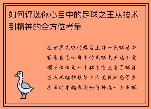 本文旨在对巴萨10号球员的未来发展前景及其对球队的影响进行深度分析。随着巴萨在经历了数个赛季的过渡期后,球队对新一代球员的依赖愈加明显,巴萨10号的角色也愈发重要。本文将从四个方面对这一问题进行全面探讨:首先是巴萨10号的技术特点及潜力,其次是球员的战术适应性,再来分析他与巴萨队内核心球员的配合情况...